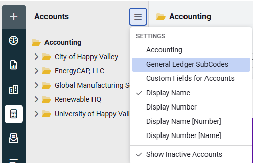 You can manage GL subcodes in the Accounts module menu (three stacked lines at the top of the hierarchy panel) without subscribing to the Accounting Export feature.