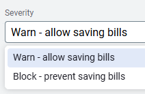 - Block—Provides a message during bill entry and prevents you from saving the bill.
