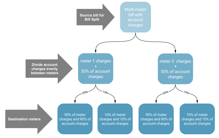 - When the entire bill is split, account charges are split evenly to the meters on the bill.