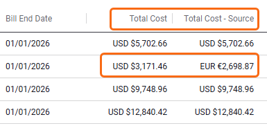 - Total Cost - shows the currency code set in Data Reporting Settings.