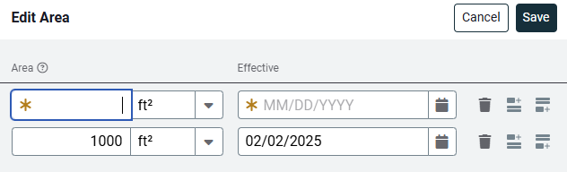 Floor area for spaces is now versionable. If you need to adjust a space's area, you can update the value and set an effective date to keep changes accurate over time.