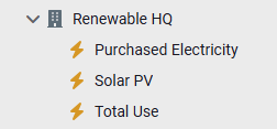 - Solar PV meter - how much energy the solar array generates (varies because the sun isn't always shining)